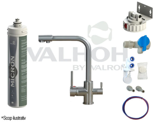 Filtrul MICRON de la Valrom este soluția ideală pentru cei care își doresc o apă pură, direct de la robinet: acasă, la birou sau în spații comerciale precum restaurante, cafenele. Proiectat pentru a fi montat în punctele de consum (de exemplu sub chiuvetă), acest sistem filtrează apa potabilă din rețelele publice, controlată microbiologic.