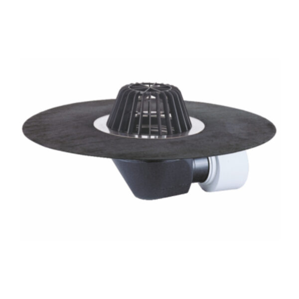 Receptorul pentru acoperis-terasa cu iesire orizontala, guler din bitum si parafrunzar, se utilizeaza pentru preluarea apelor pluviale de pe terase necirculabile, sau circulabile flotante, hidroizolate cu membrane bituminoase si dirijarea acestora catre instalatia de canalizare a cladirii. Corpul receptorului are perete dublu din PP ceea ce ii confera o termoizolare anticondens. -Inaltimea de instalare: 147mm. -Materiale: PP, otel detectie, membrana bituminoasa -Parti componente: reductie DN110xDN75, parafrunzar bombat, parafrunzar plat d170mm, corp receptor termoizolant cu guler membrana bituminoasa d500mm. -Debit [l/s]: DN75 10. DN110 6 -Masa [kg/buc]: 1,64 -Conform EN 1253 -Produsul se livreaza incluzand un capac de protectie anticontaminare la montaj. Punerea in opera se va face de personal specializat respectand recomandarile producatorului. Conexiunea la instalatia de canalizare a cladirii se face prin sistemul mufa-garnitura in cazul tevilor din PP, iar in cazul tevilor din PEID prin sudura, utilizandu-se conectorul 46012075075 (pt. 75) sau 46012110110 (pt. 110)., ,