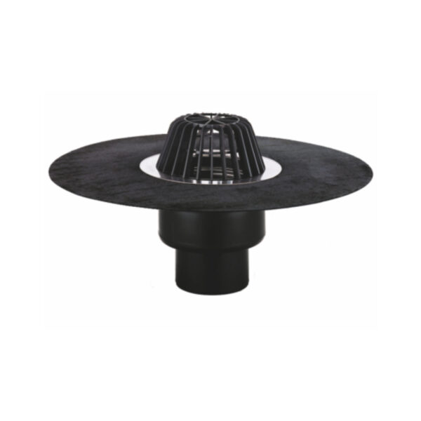 Receptor pentru acoperis plat DN75 cu iesire verticala si corp izolat termic, cu guler din bitum pentru o imbinare perfecta cu membrane de hidroizolatie din bitum. Cu rezistenta electrica cu autoreglare pentru degivrare, (10 – 30 W / 230 V) si parafrunzar D180 mm.